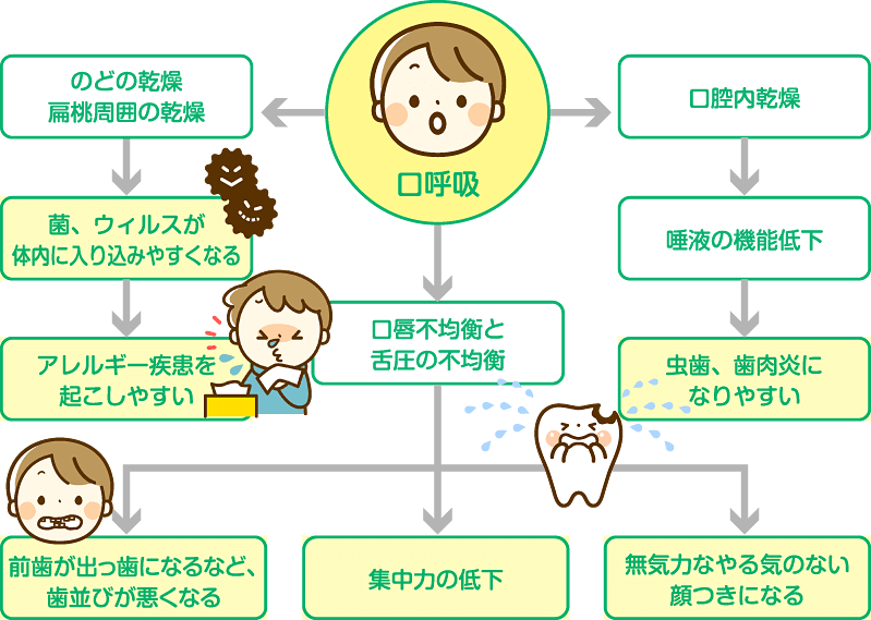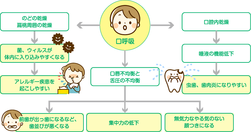 お口ポカーンが怖いのは、さまざまなトラブルを引き起こすことです。